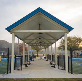 These pickleball courts were added as a new part to an existing soccer complex. Nestled next to an existing concessions and restroom building, this project added six new pickleball courts and a covered pavilion for the public to enjoy.